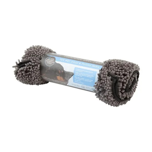 De Scruffs Noodle Dry Mat is extreem absorberend en neemt gemakkelijk overtollig vocht op, zodat de vacht van de hond snel droog is na een natte en modderige wandeling.