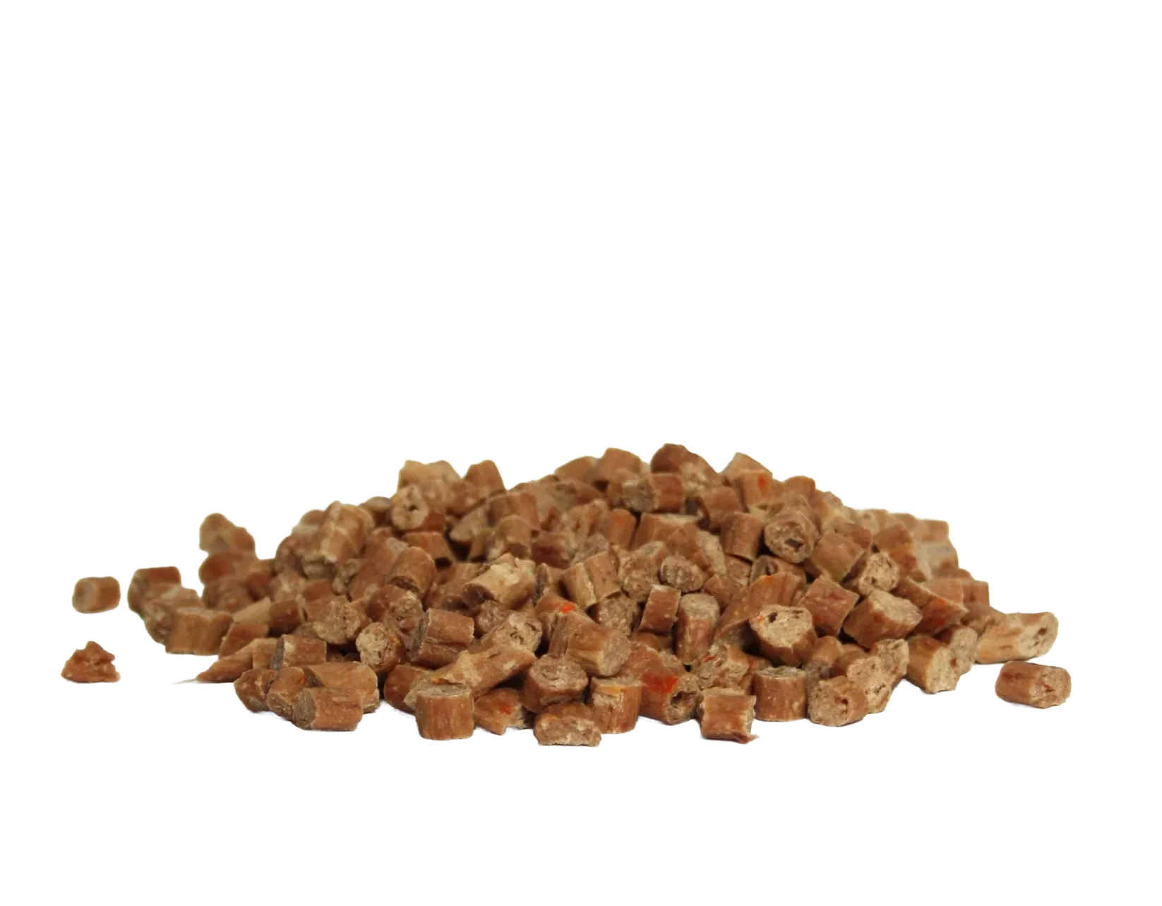 De dierlijke eiwitten in deze hondensnack zijn uitsluitend afkomstig van eend. Daarnaast is wortel toegevoegd als belangrijk plantaardig bestanddeel. Wortel staat bekend om het ondersteunen van de spijsvertering en het immuunsysteem van je hond. Zo geef je tijdens de training niet alleen een beloning, maar ook een gezonde snack.